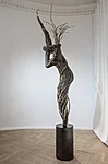 Teiseks saamine. Materjalid: õunapuu, värvitud teras.1.9m. Autor Argo Männik. Erakogus. 2024